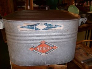 Oval Wash Boiler With Lid and Original LabelFabulous old galvanized tin wash boiler with lid. Original label is mostly intact and adds great visual interest to an already very decorative piece. This item is also fully functional with many useful purposes as a container.